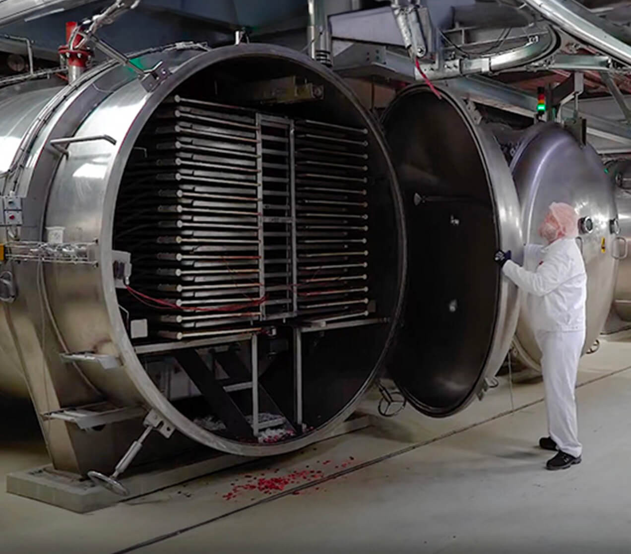 Fruggies utilise un procédé technologique innovant utilisé depuis plus de 118 ans dans le monde entier appelé plus communément processus de lyophilisation pour éliminer l'eau des fruits et légumes frais.