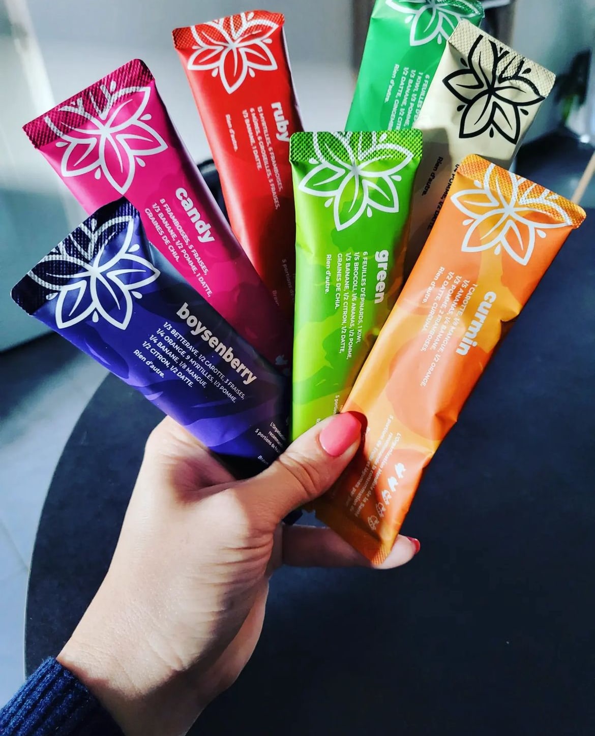 À l'inverse des jus et smoothies industriels, nous n'éliminons pas les fibres lors de la transformation des fruits et légumes, ce qui assure une absorption lente et régulière des sucres, sans pic de glycémie.