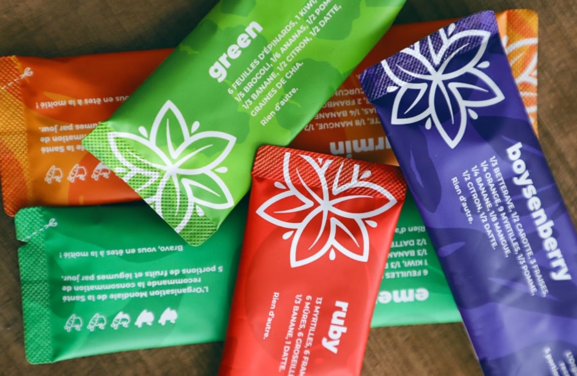La moitié de votre apport quotidien (200g) en fruits et légumes en un seul sachet.