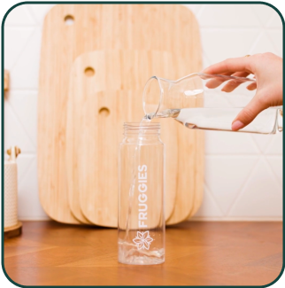 🍏 Ajoutez le contenu du sachet et refermez la bouteille Fruggies.