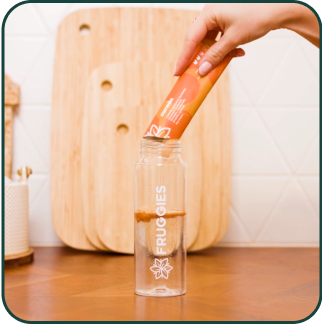 Vous l'avez compris, c'est un mélange tout-en-un super polyvalent et pratique — vous pouvez le boire avec de l'eau ou du lait - ou l'ajouter à votre shaker protéiné habituel — Fruggies est conçu pour être facile à utiliser et peut être mélangé avec à peu près tout ce que vous aimez !